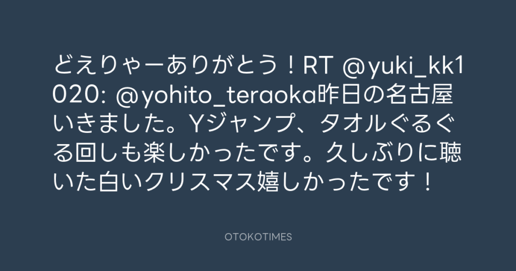 どえりゃーありがとう!RT @yuki_kk1020: @yohito_teraoka昨日の名古屋いきました... -