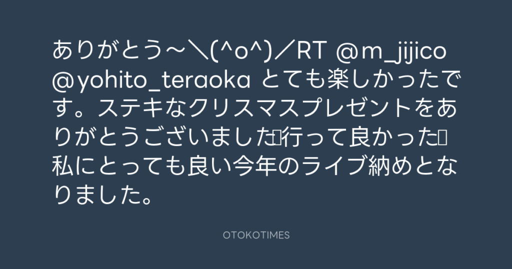 ありがとう〜\(^o^)/RT @m_jijico @yohito_teraoka とても楽しかったです。ステ... -