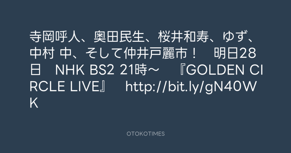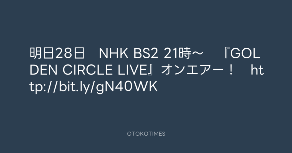 明日28日 NHK BS2 21時〜 『GOLDEN CIRCLE LIVE』オンエアー! http://bit.ly/g... -