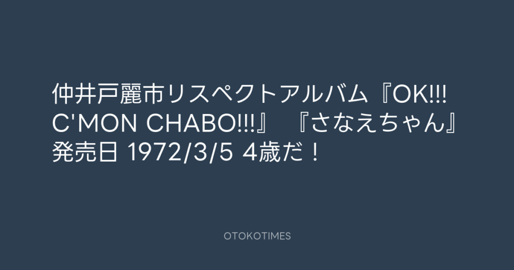 仲井戸麗市リスペクトアルバム『OK!!!C'MON CHABO!!!』 『さなえちゃん』発売日 19... -
