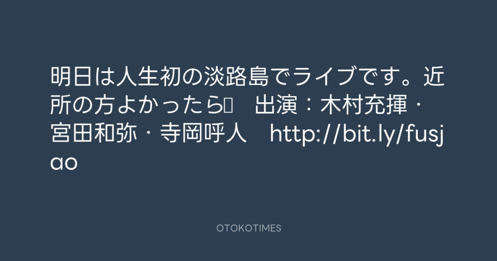 明日は人生初の淡路島でライブです。近所の方よかったら♪ 出演:木村充揮・宮田和... -