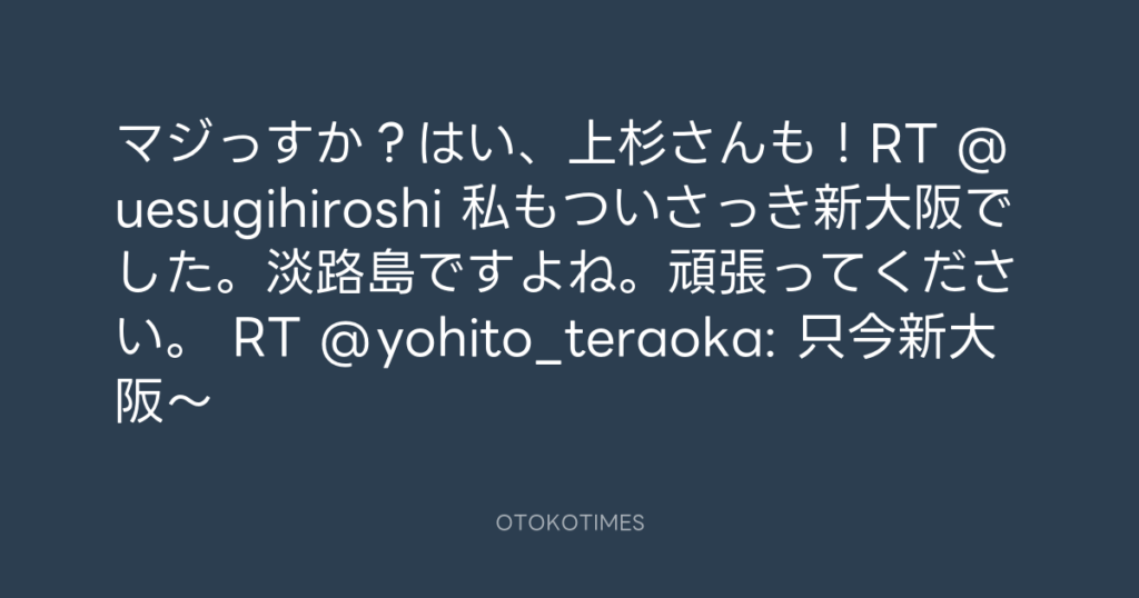 マジっすか?はい、上杉さんも!RT @uesugihiroshi 私もついさっき新大阪でした。... -
