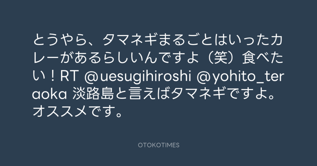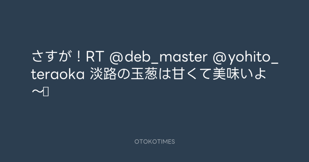 さすが!RT @deb_master @yohito_teraoka 淡路の玉葱は甘くて美味いよ〜♪ -