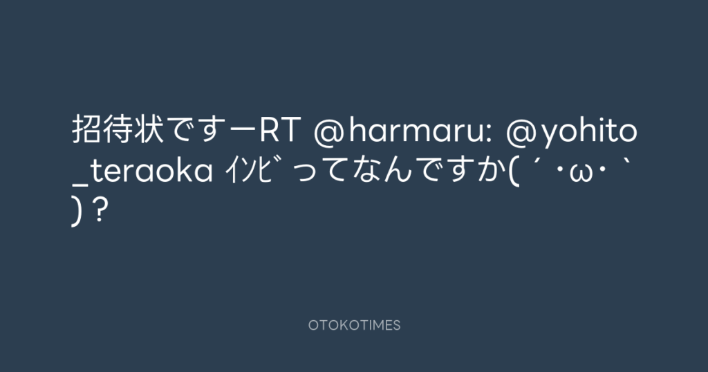 招待状ですーRT @harmaru: @yohito_teraoka インビってなんですか(´・ω・`)?