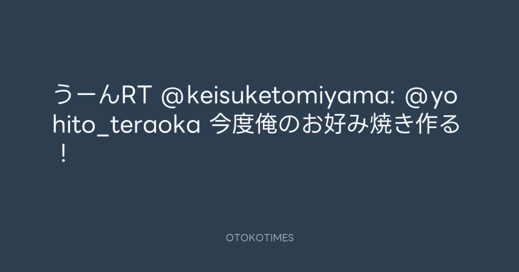 うーんRT @keisuketomiyama: @yohito_teraoka 今度俺のお好み焼き作る! -