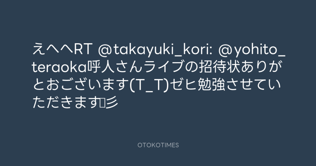 えへへRT @takayuki_kori: @yohito_teraoka呼人さんライブの招待状ありがとおござ... -