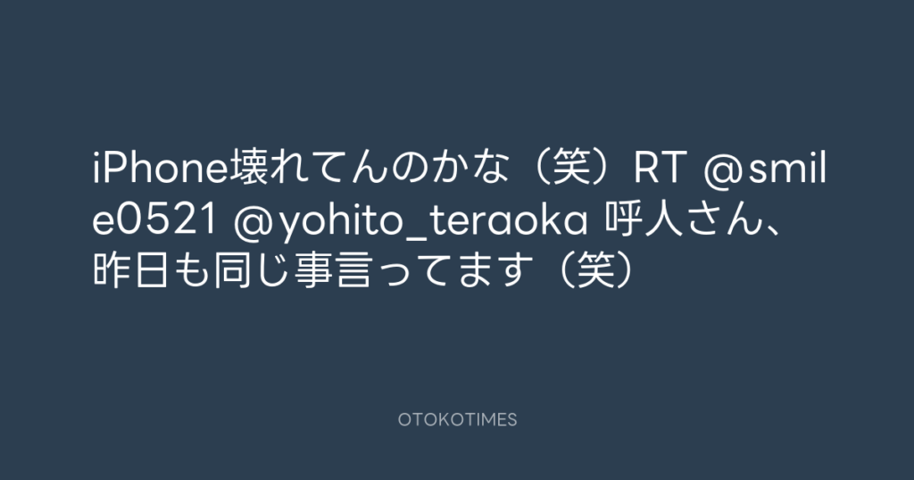 iPhone壊れてんのかな(笑)RT @smile0521 @yohito_teraoka 呼人さん、昨日も同じ... -