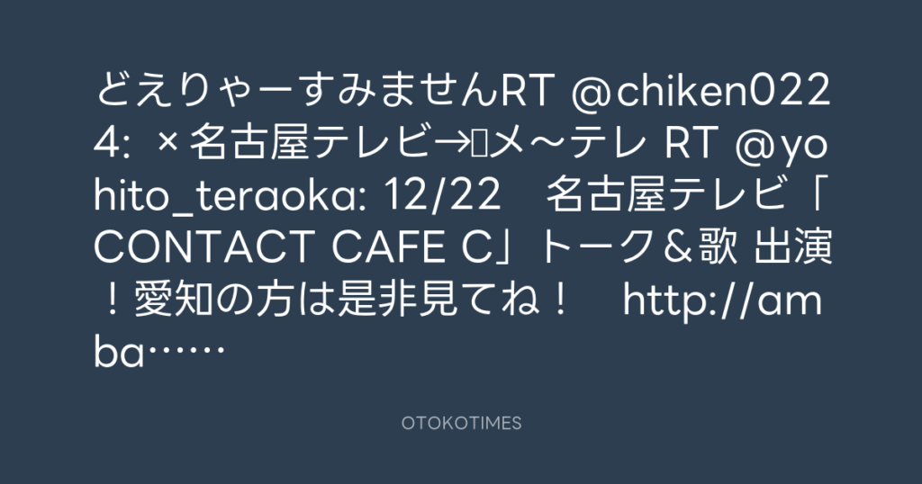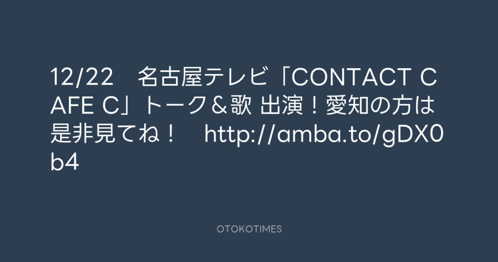 12/22 名古屋テレビ「CONTACT CAFE C」トーク&歌 出演!愛知の方は是非見てね!...