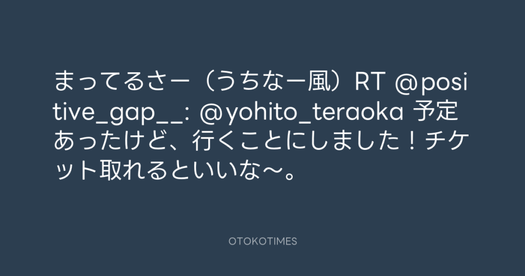 まってるさー(うちなー風)RT @positive_gap__: @yohito_teraoka 予定あったけど... -