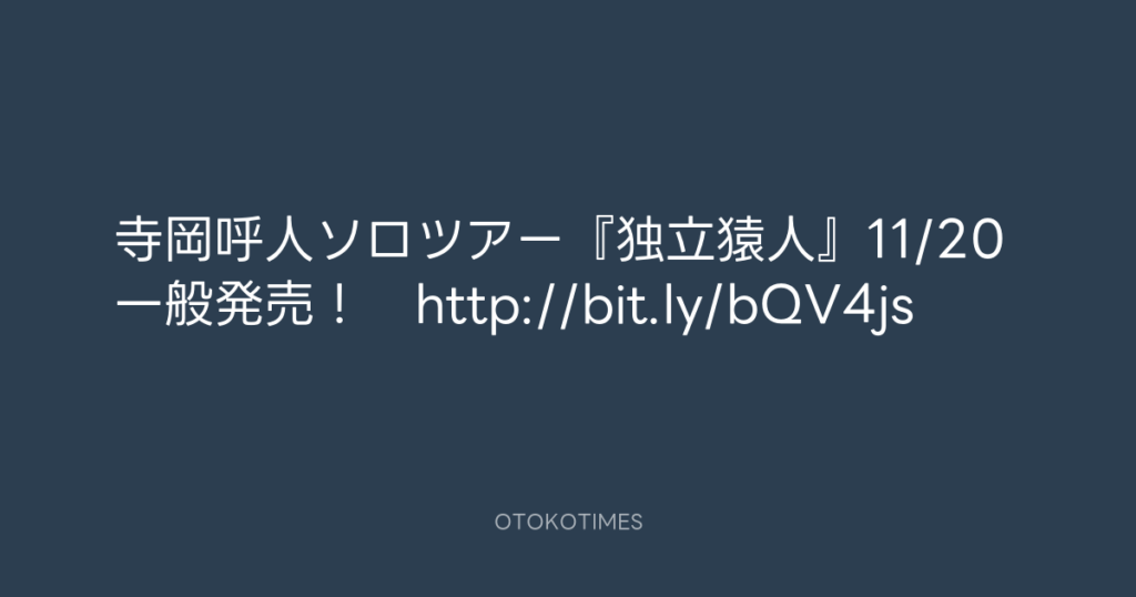 寺岡呼人ソロツアー『独立猿人』11/20一般発売! http://bit.ly/bQV4js -
