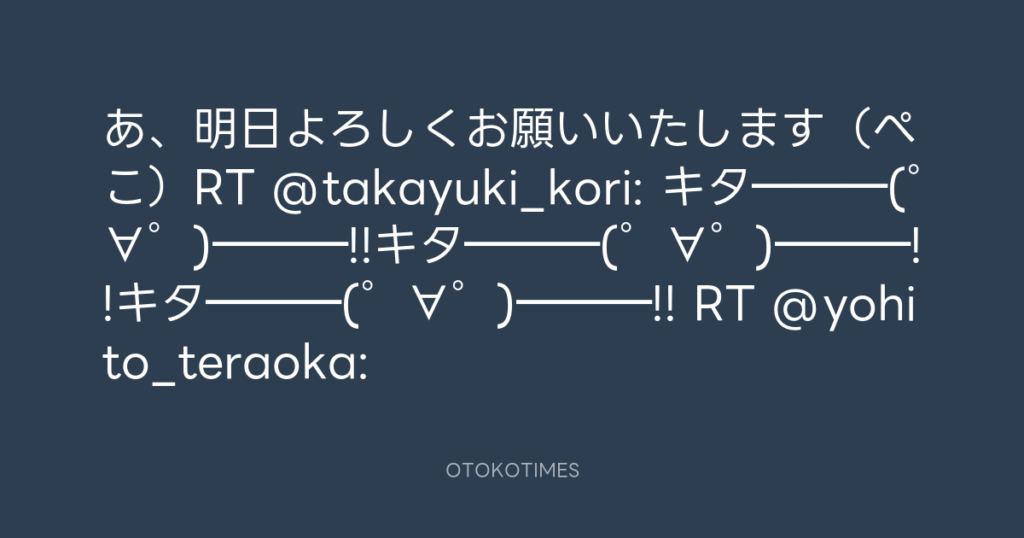 あ、明日よろしくお願いいたします(ぺこ)RT @takayuki_kori: キタ━━━(゜∀゜)━━━!... -