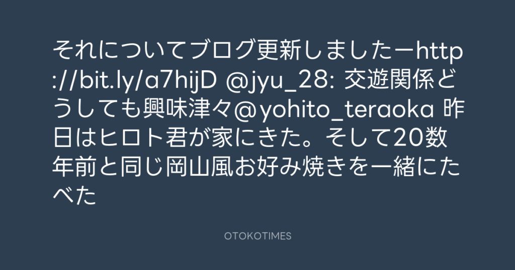 それについてブログ更新しましたーhttp://bit.ly/a7hijD @jyu_28: 交遊関係どうし... -