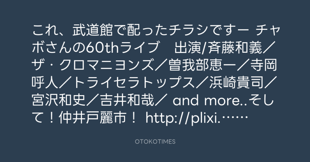これ、武道館で配ったチラシですー チャボさんの60thライブ 出演/斉藤和義/ザ・... -