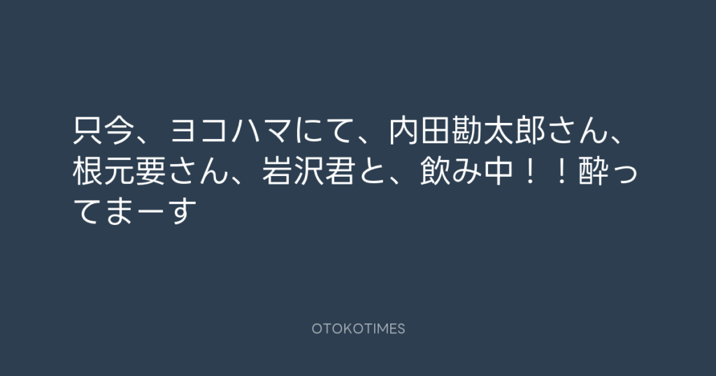 只今、ヨコハマにて、内田勘太郎さん、根元要さん、岩沢君と、飲み中!!酔ってまーす -