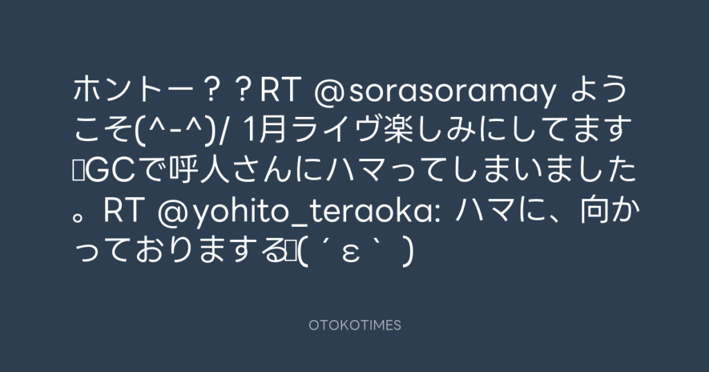 ホントー??RT @sorasoramay ようこそ(^-^)/ 1月ライヴ楽しみにしてます♪GCで呼人... -