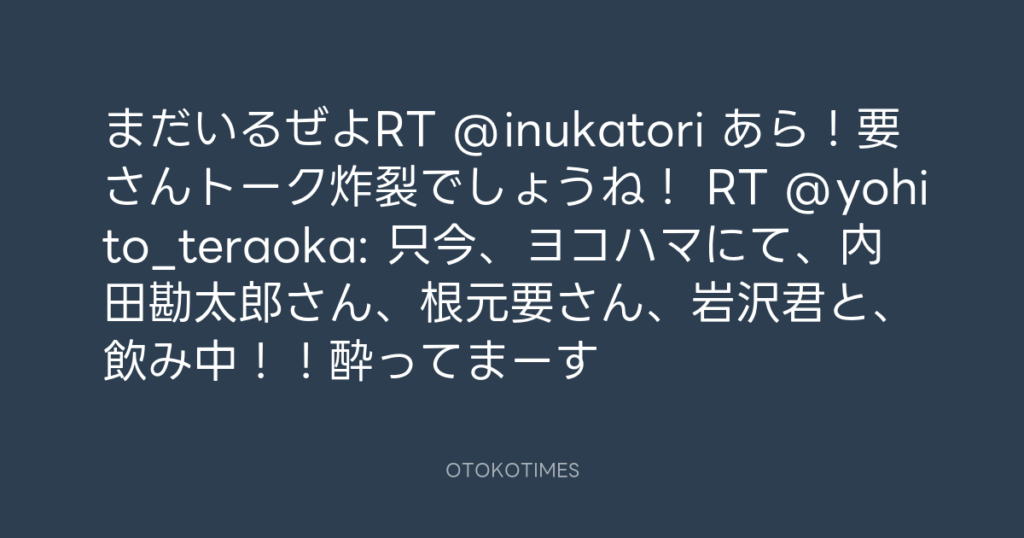 まだいるぜよRT @inukatori あら!要さんトーク炸裂でしょうね! RT @yohito_terao... -