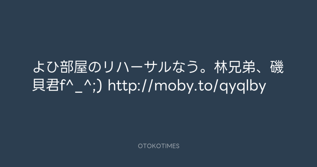 よひ部屋のリハーサルなう。林兄弟、磯貝君f^_^;) http://moby.to/qyqlby -