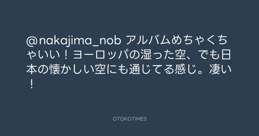 @nakajima_nob アルバムめちゃくちゃいい!ヨーロッパの湿った空、でも日本の懐か... -