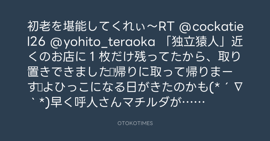 独猿中毒へよーこそ!RT @hana3yz @yohito_teraoka 呼人さん!欲しくて欲しくてつ... -