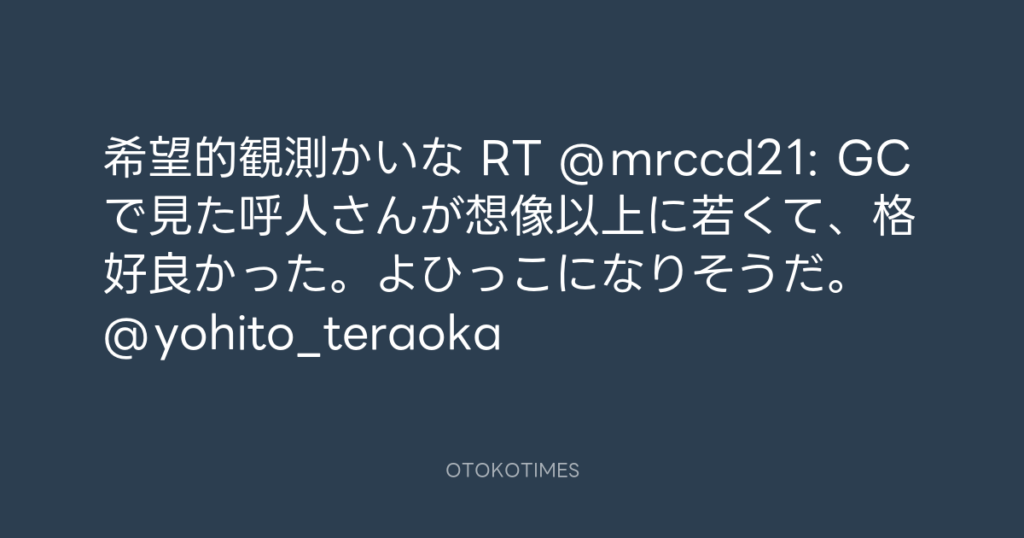 希望的観測かいな RT @mrccd21: GCで見た呼人さんが想像以上に若くて、格好良かっ... -