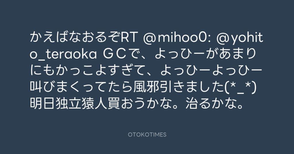 かえばなおるぞRT @mihoo0: @yohito_teraoka GCで、よっひーがあまりにもかっこ... -
