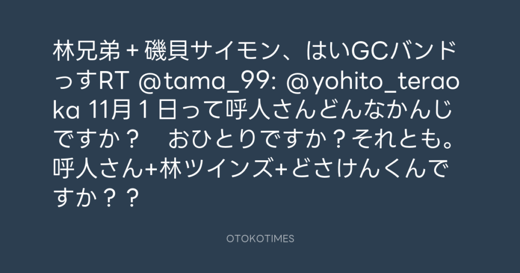 林兄弟+磯貝サイモン、はいGCバンドっすRT @tama_99: @yohito_teraoka 11月1日っ... -