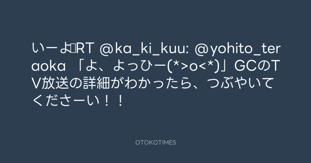 いーよ♪RT @ka_ki_kuu: @yohito_teraoka 「よ、よっひー(*>o<*)」GCのTV放送... -