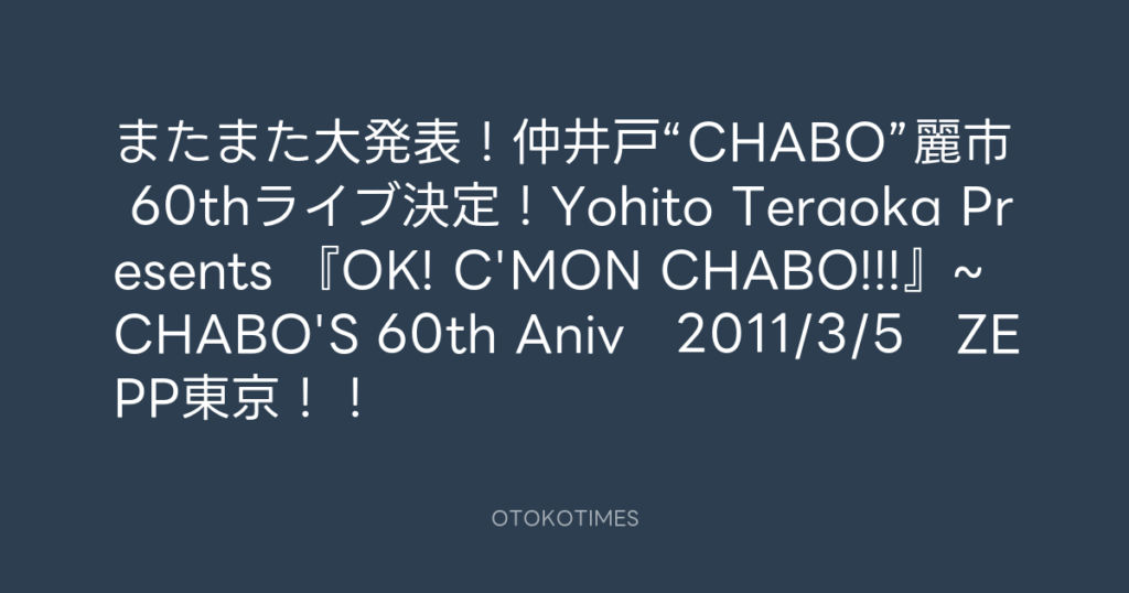 またまた大発表!仲井戸“CHABO”麗市 60thライブ決定!Yohito Teraoka Presents 『O... -