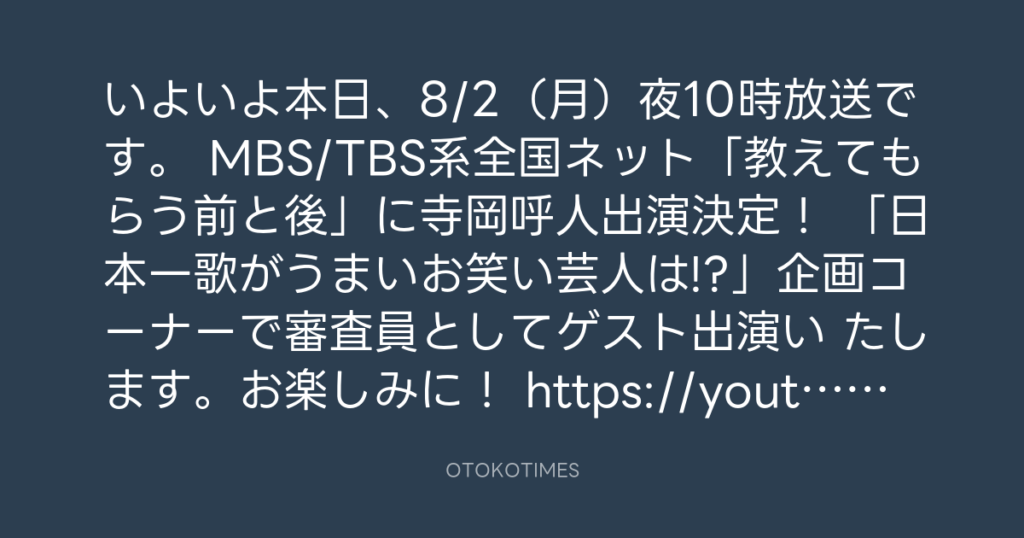 寺岡呼人 @yohito_teraoka – 20:11・2021年8月4日