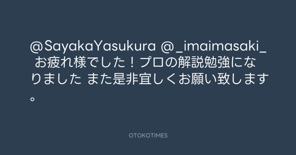 @SayakaYasukura @_imaimasaki_ お疲れ様でした!プロの解説勉強になりました😀 ま... -