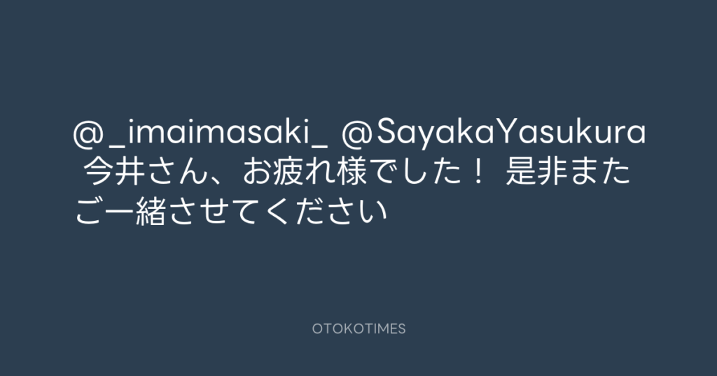 @_imaimasaki_ @SayakaYasukura 今井さん、お疲れ様でした! 是非またご一緒させて... -