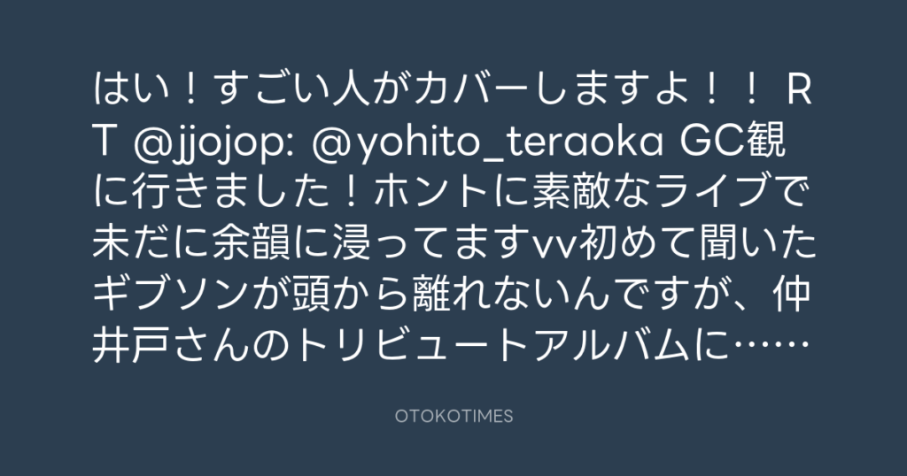 はい!すごい人がカバーしますよ!! RT @jjojop: @yohito_teraoka GC観に行きまし...