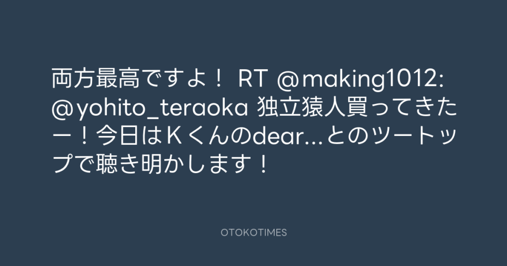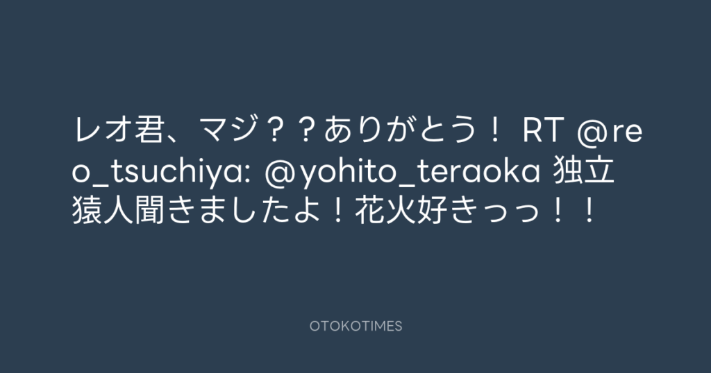 レオ君、マジ??ありがとう! RT @reo_tsuchiya: @yohito_teraoka 独立猿人聞きま... -