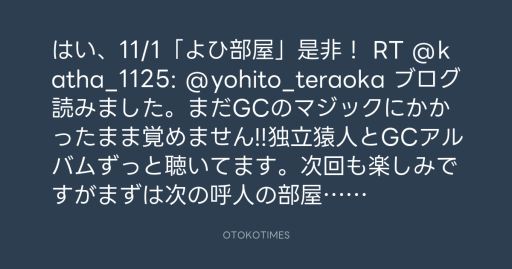 はい、11/1「よひ部屋」是非! RT @katha_1125: @yohito_teraoka ブログ読みました... -