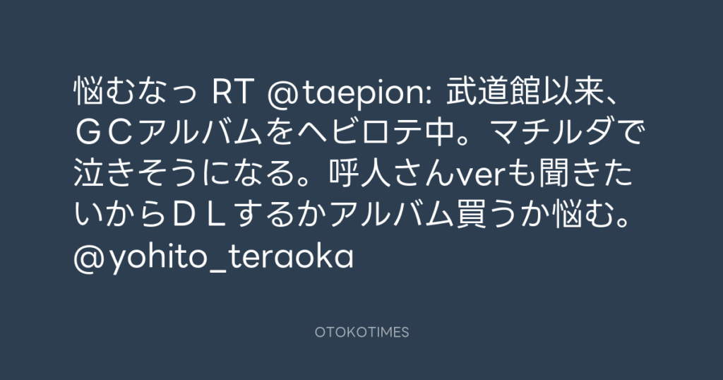 悩むなっ RT @taepion: 武道館以来、GCアルバムをヘビロテ中。マチルダで泣きそ... -