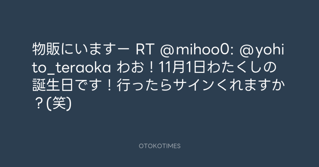 物販にいますー RT @mihoo0: @yohito_teraoka わお!11月1日わたくしの誕生日です... -