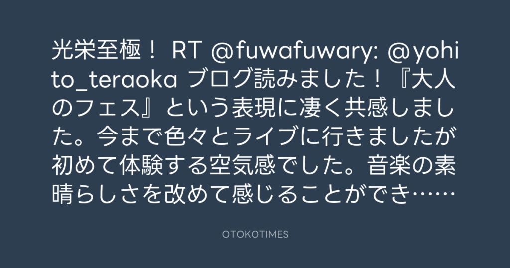 光栄至極! RT @fuwafuwary: @yohito_teraoka ブログ読みました!『大人のフェス』... -
