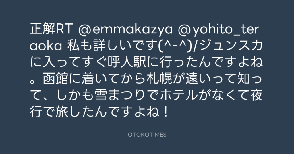 正解RT @emmakazya @yohito_teraoka 私も詳しいです(^-^)/ジュンスカに入ってすぐ... -