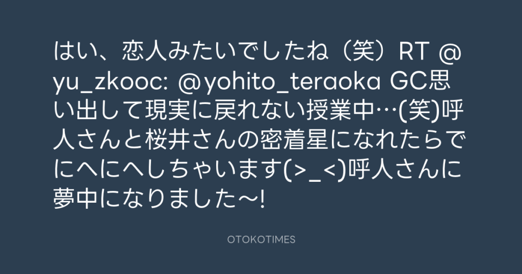 はい、恋人みたいでしたね(笑)RT @yu_zkooc: @yohito_teraoka GC思い出して現実... -
