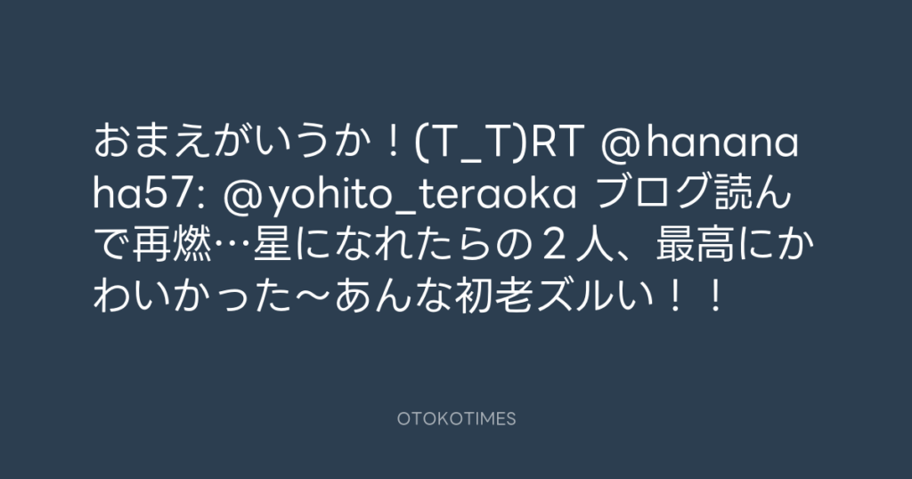 おまえがいうか!(T_T)RT @hananaha57: @yohito_teraoka ブログ読んで再燃…星にな... -