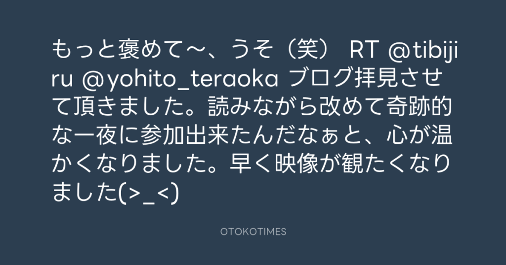 もっと褒めて〜、うそ(笑) RT @tibijiru @yohito_teraoka ブログ拝見させて頂き... -