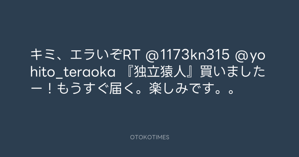 キミ、エラいぞRT @1173kn315 @yohito_teraoka 『独立猿人』買いましたー!もうす... -