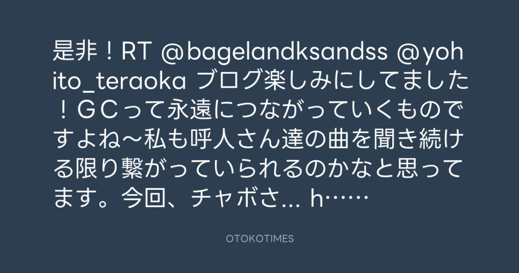 是非!RT @bagelandksandss @yohito_teraoka ブログ楽しみにしてました!GCって... -