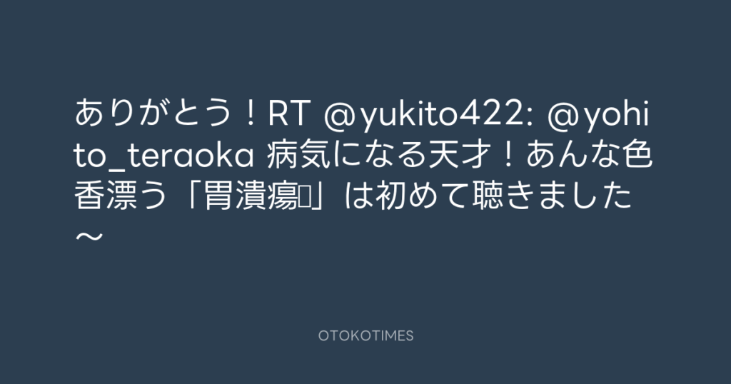 ありがとう!RT @yukito422: @yohito_teraoka 病気になる天才!あんな色香漂う「胃... -