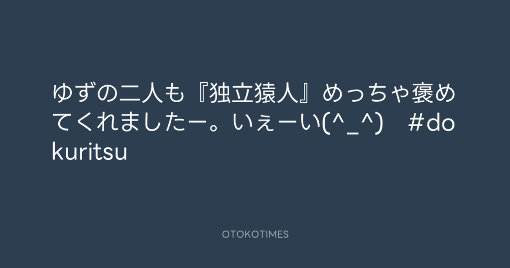 ゆずの二人も『独立猿人』めっちゃ褒めてくれましたー。いぇーい(^_^) #dokuritsu -