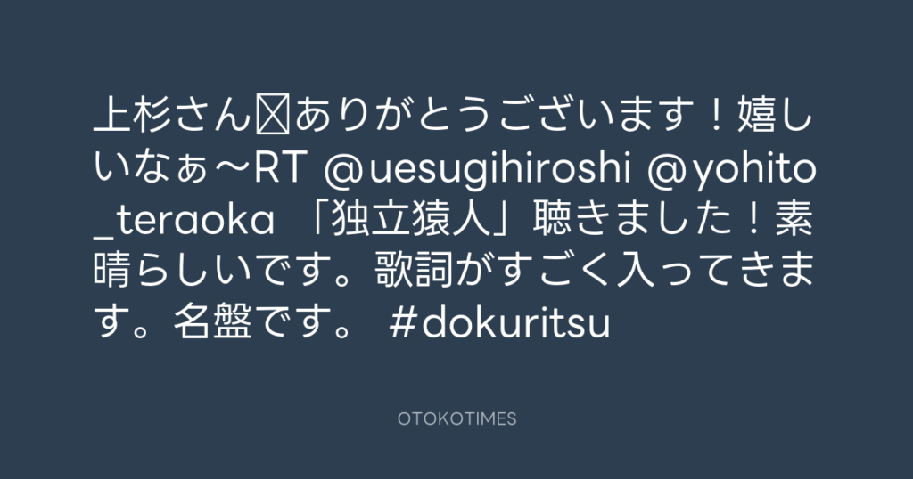 上杉さん‼ありがとうございます!嬉しいなぁ〜RT @uesugihiroshi @yohito_teraoka ... -