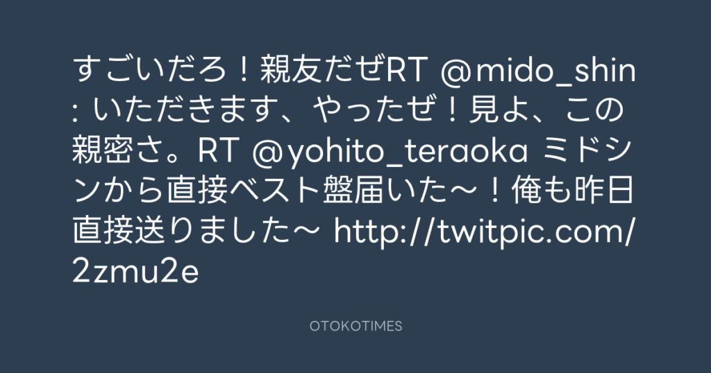 ミドシンから直接ベスト盤届いた〜! 俺も昨日直接送りました〜 http://twitpic.co... -