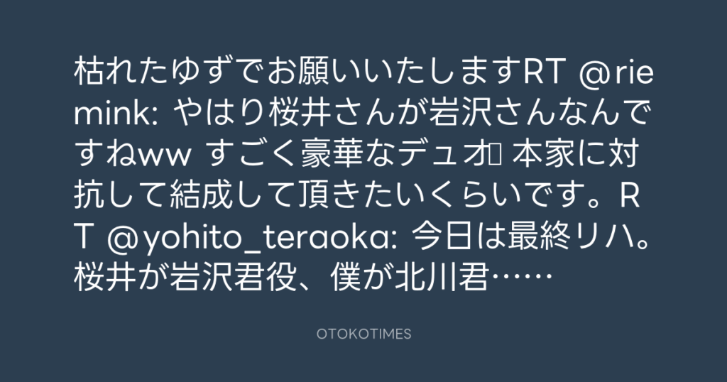 枯れたゆずでお願いいたしますRT @riemink: やはり桜井さんが岩沢さんなんですねww... -