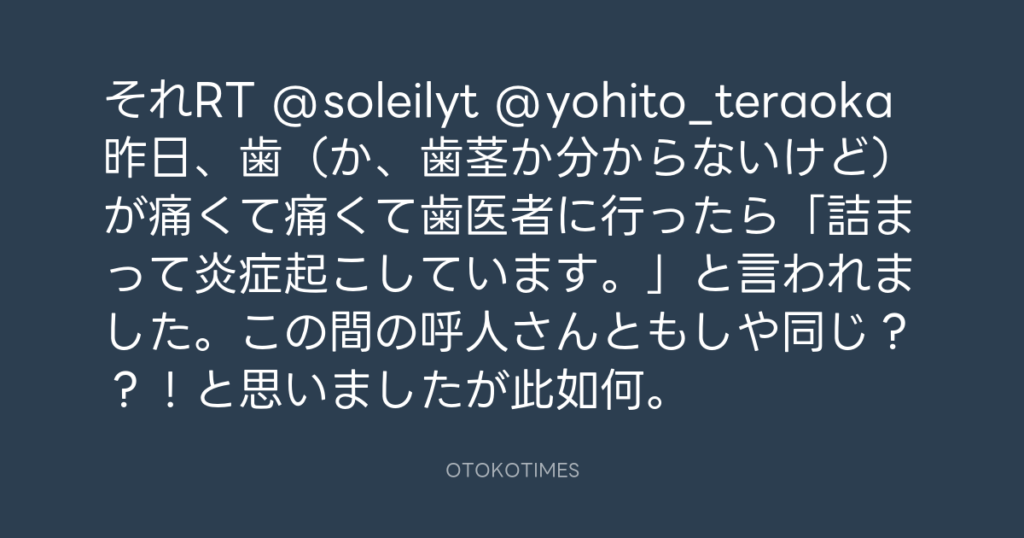 それRT @soleilyt @yohito_teraoka 昨日、歯(か、歯茎か分からないけど)が痛くて... -