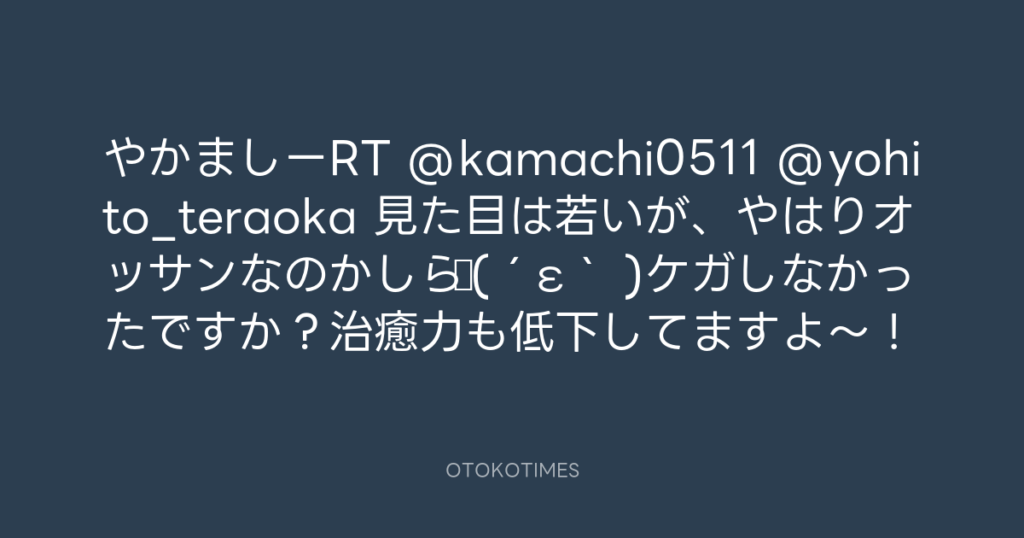 やかましーRT @kamachi0511 @yohito_teraoka 見た目は若いが、やはりオッサンなの... -